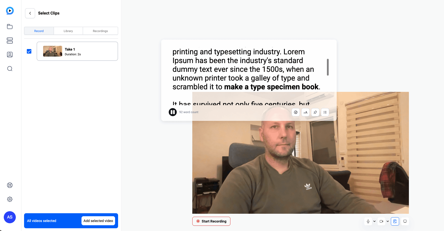 Refreshed and aligned UI & UX for the Self-Record flow directly from the Creator project, with Teleprompter included