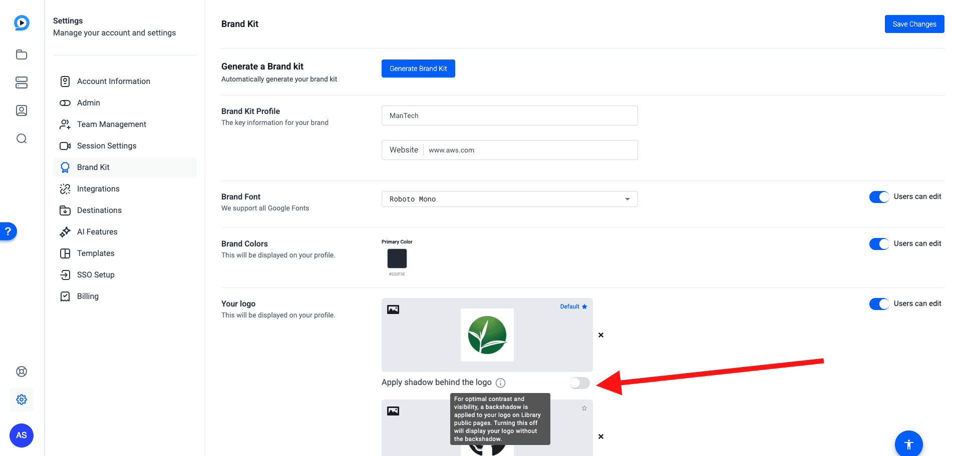 For Accounts that have a transparent Logo which is not fully visible on branded pages across OpenReel, now it’s possible to apply a drop shadow that will increase the logo visibility