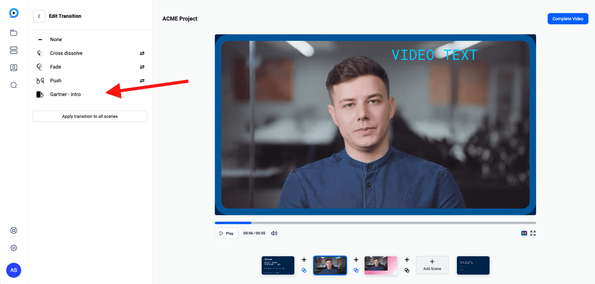 As users are manually seeking the video, the corresponding Scene is automatically selected for further editing
